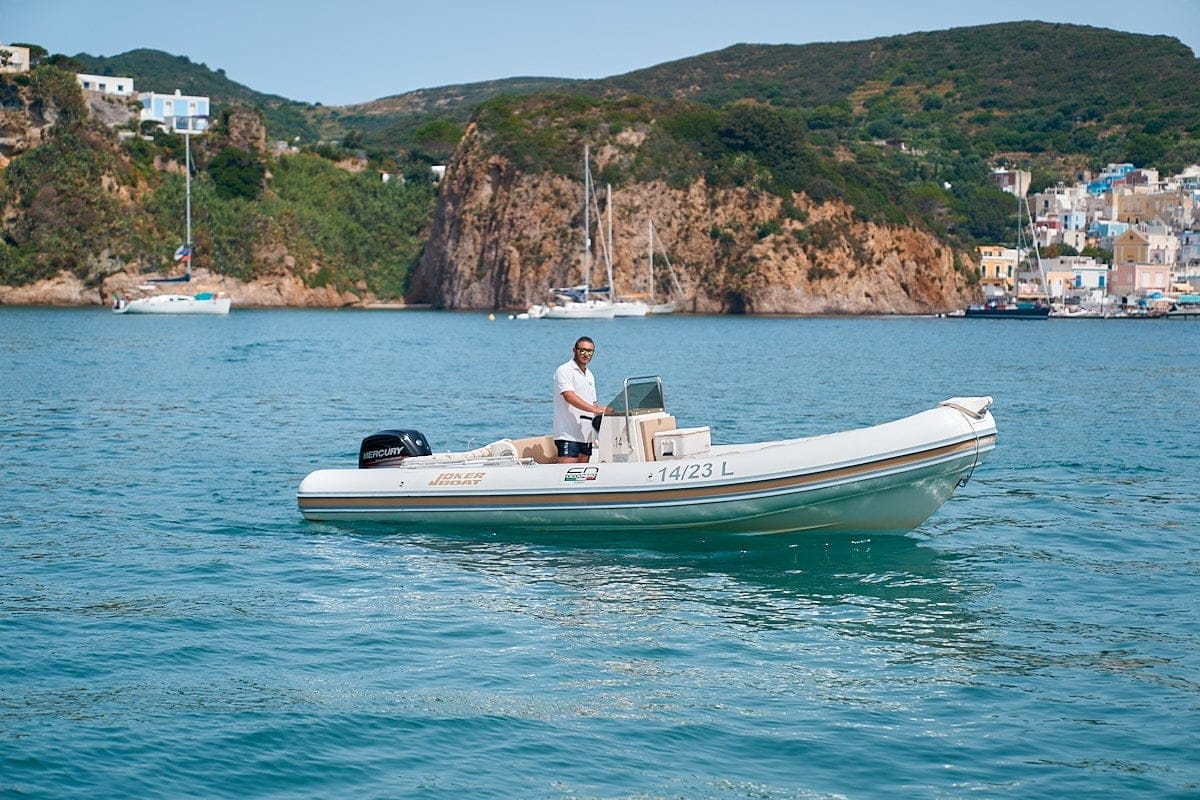 Designed to accommodate up to 8 people, this dinghy is perfect for groups of friends or families who want to spend an unforgettable day at sea discovering the island of Ventotene, Palmarola and Ponza.